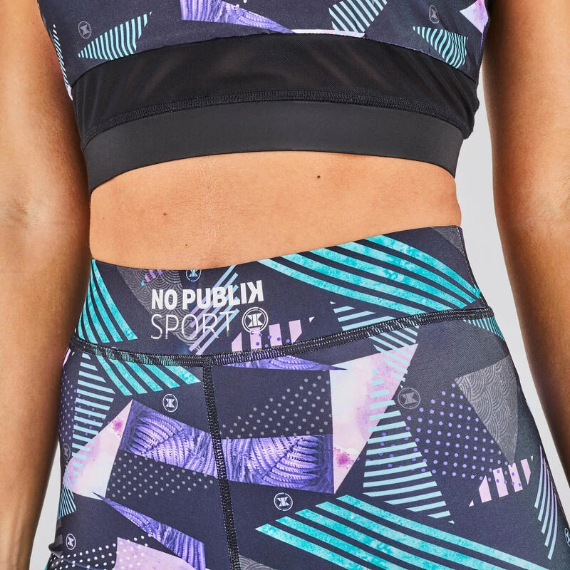 De sportfietser Fuji is ideaal voor de praktijk van sport. Het is zwart met een afdruk. De snede ligt in de buurt van het lichaam en de grote elastische riem heeft een omhulseleffect.