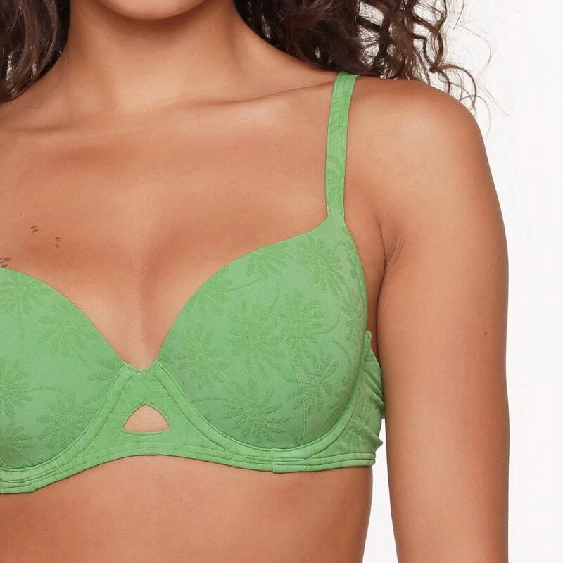 Kiwi… One with nature. Een groene kleur die blend met de natuur. Dè kleur voor een dagje aan het strand! De bloemenprint uit structuurstof maakt deze serie een echte must-have. Deze moulded bikini is voorgevormd, heeft verstelbare schouderbandjes en is voorzien van een beugel. Hierdoor is deze bikini ook zeer geschikt voor de grotere maten.