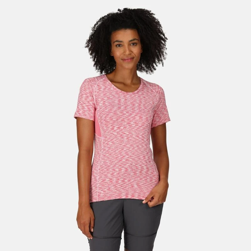 Het Laxley T-shirt van Regatta voor dames is fantastisch voor workouts in de sportschool en hardlopen in de buitenlucht. De sporttop voor dames is uitgevoerd met extra elastaan dat met u meebeweegt. Je blijft lekker fris dankzij de goede vochtafdrijvende eigenschappen die vocht naar het oppervlak drijven.