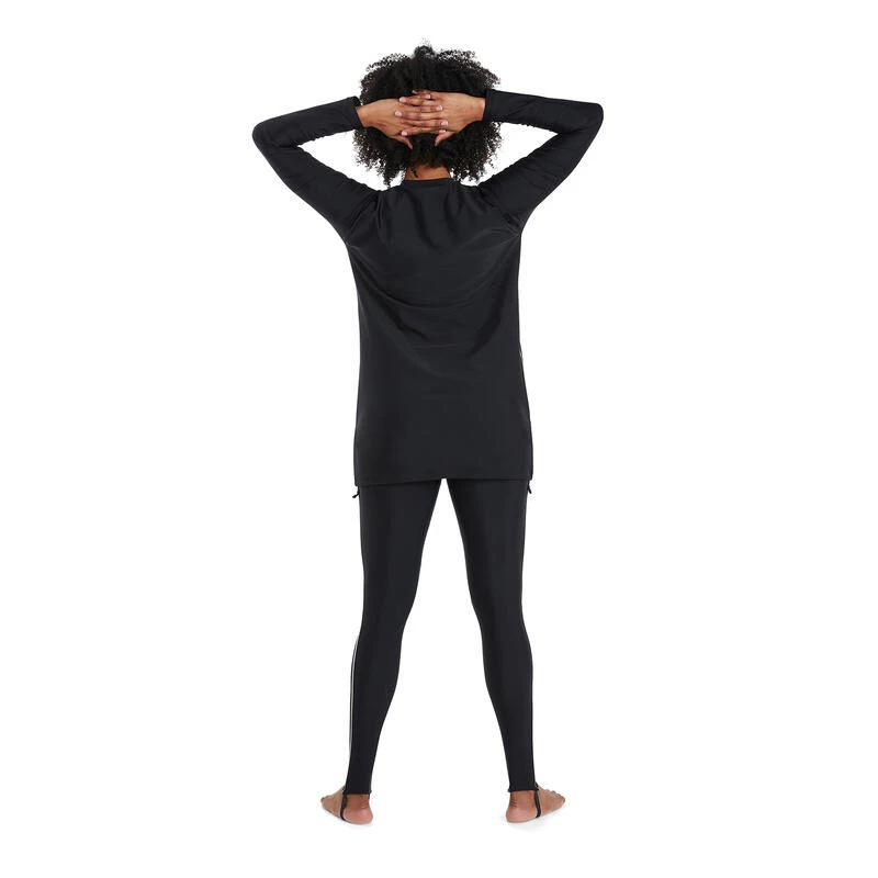 Ontworpen voor het zwembad en het strand, onze lange tuniek biedt dekking van nek tot pols en knie, en biedt een comfortabele, losse pasvorm. Een interne beha met ingenaaide cups biedt steun en een bescheiden pasvorm terwijl u zwemt. De tuniek is voorzien van knoopsgatverbindingen waarmee u onze hijab en zwembroek (apart verkrijgbaar) uit het assortiment kunt verbinden. De tuniek is chloorbestendiger dan standaard zwemkleding en heeft CREORA® HighClo™ voor een pasvorm die langer als nieuw blijft. Gemaakt van onze zachte, rekbare Endurance10-stof, zodat u van uw zwempartij kunt genieten zonder u beperkt te voelen.